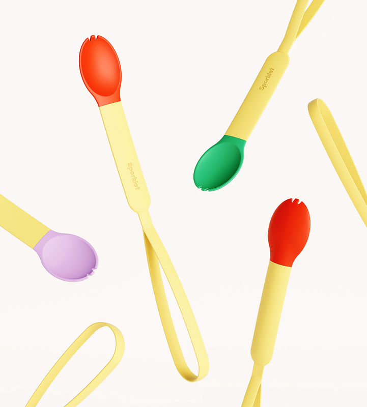 A smarter spork designed to keep the chaos in control, with a useful loop that helps keep their tools close at hand.